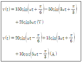70. R= 4Ω, ωL= 3Ω의 직렬회로에 e=100√2 sinωt+50√2 sin3ωt를 인가할 때 이 회로의 소비전력은 약 몇 W인가?