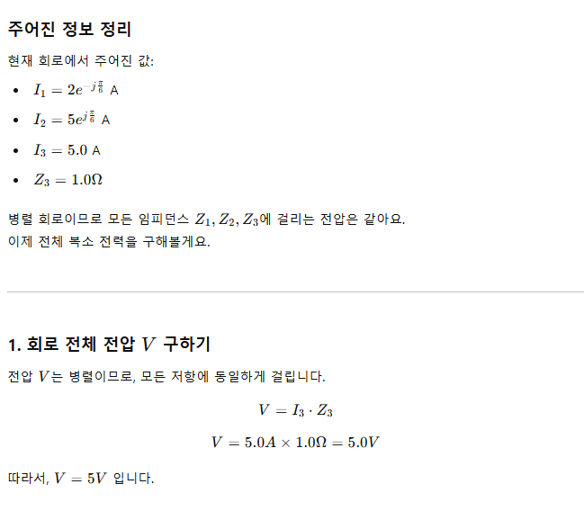이 값을 복소수로 변환한 후 더하고 다시 극좌표 형태로 변환해서 최종 답을 구할게!
