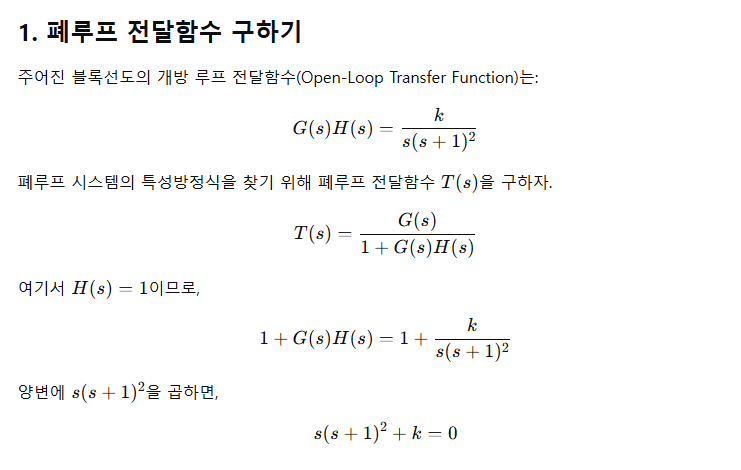 - 맞는 설명입니다. 특성방정식의 차수는 시스템의 극점 개수와 같으며, 근궤적의 가지 수도 이에 대응됩니다.
