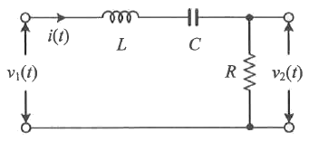 G(s) = v2(s) / v1(s) = R*v1(s) / Z / v1(s) = R / Z = R / (sL + 1/sC + R) = sRC / (s^2LC + 1 + RsC)