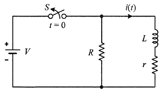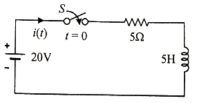 63. RC 직렬회로에서 직류전압 V(V)가 인가되었을 때, 전류 i(t)에 대한 전압 방정식(KVL)이