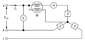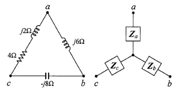 65. 그림과 같은 부하에 선간전압이 Vab = 100∠30°(V)인 평형 3상 전압을 가했을 때 선전류 Ia(A)는?
