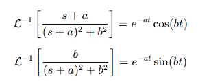 그래서 첫 번째 분리된 항의 역변환은 e^{-t}cos(2t) - (1/2)e^{-t}sin(2t)가 됩니다.
