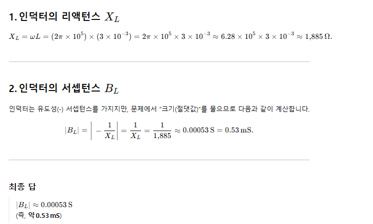 리액턴스( ωL )는 n고조파이면 n을 곱해줘야함!