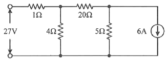 등가변환을 통해 27V를 27I로 보고, 1옴과 4옴 직렬을 병렬로 봄