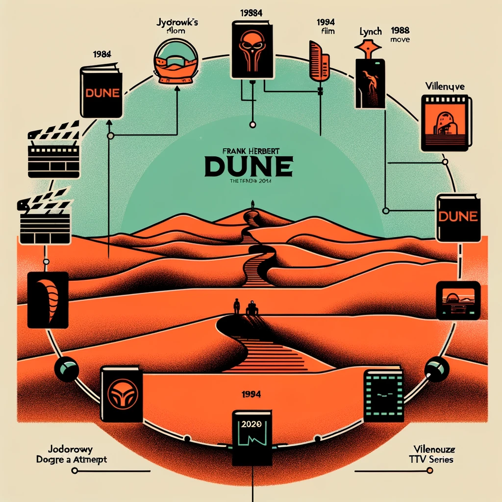 "듄"을 영화로 만들려는 시도는 1970년대 초부터 시작되었습니다. 가장 유명한 시도 중 하나는 알레한드로 조도로프스키가 이끈 프로젝트였지만, 여러 가지 이유로 제작이 중단되었습니다. 이 실패한 프로젝트는 후에 "조도로프스키의 듄"이라는 다큐멘터리로 재조명되며, 영화 제작의 전설로 남게 되었습니다.