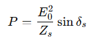 최대 유효전력이기 때문에 δ (전압 위상각) 은 90∘ sinδ=1